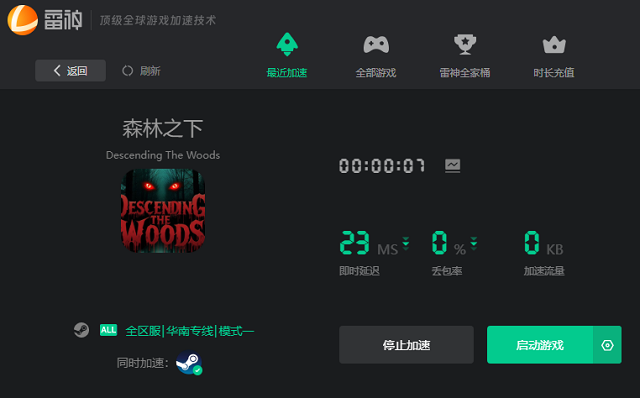 森林之下出现卡登录、加载失败、卡启动界面等问题,主要是因为本地网络环境较差,毕竟这款游戏用的海外服务器,有较强的网络限制,需要对网络进行优化才能顺利游玩。建议大家在游玩前先用雷神加速器辅助网络优化,快速疏通网络,从而顺利体验游戏。