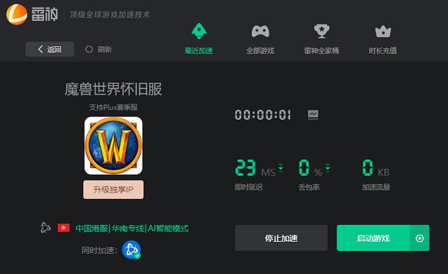 魔兽世界国服怀旧服游玩延迟高的情况,可能是当前网络波动太大,导致无法正常连接游戏服务器引起的,建议大家可以在游玩全程都使用雷神加速器,让其辅助魔兽世界国服怀旧服运行,从而改善连接,稳定游玩。
