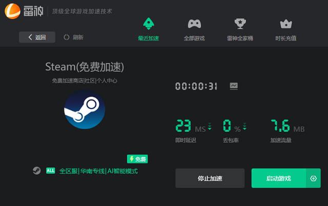 如果在本地网络正常的情况下,还是出现Steam登录失败/登录转圈的问题,建议打开雷神加速器免费优化Steam,快速疏通网络,稳定连接服务器。